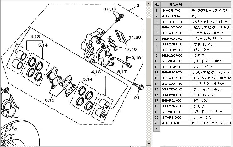 3HE-W0047-50 キャリパーシールセット フロント 2セット ¥4768-