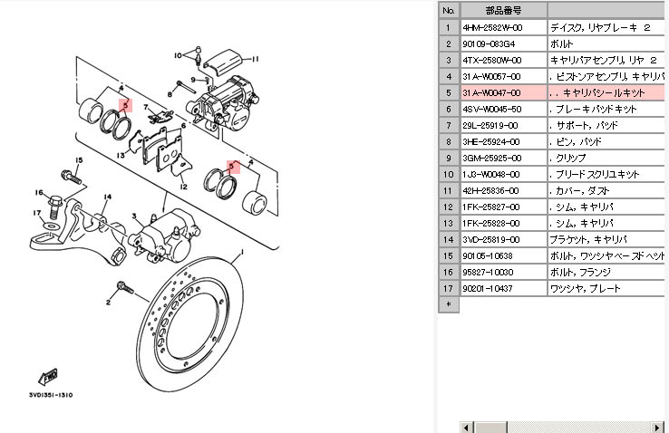 31A-W0047-00 キャリパーシールセット リヤ ¥2121-