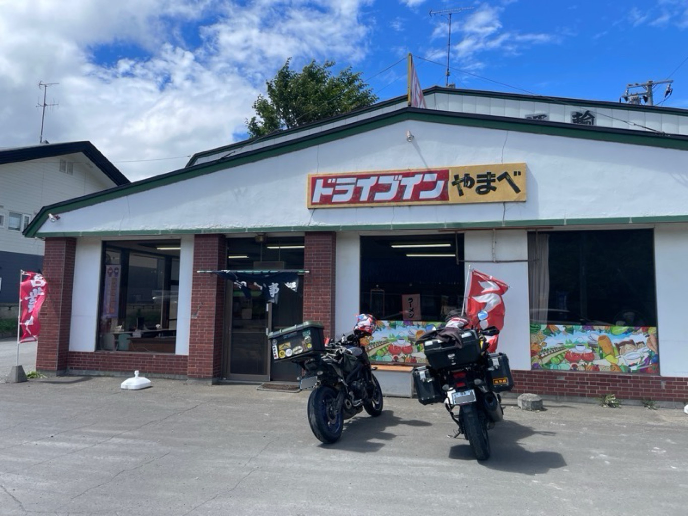 途中、バイクと人間に栄養補給