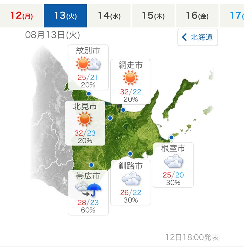 富良野あっちーのぉ、山から降りてきたら32℃て