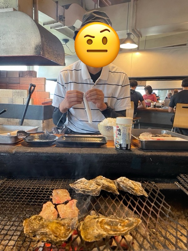 カキだけでは腹が減るのでカルビ焼いてます