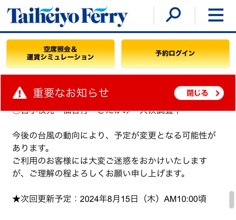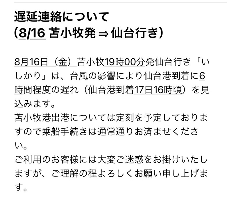 揺れる船内に普段より6時間長く乗るのか・・・さすがにこれは乗り越えられないかもしれない