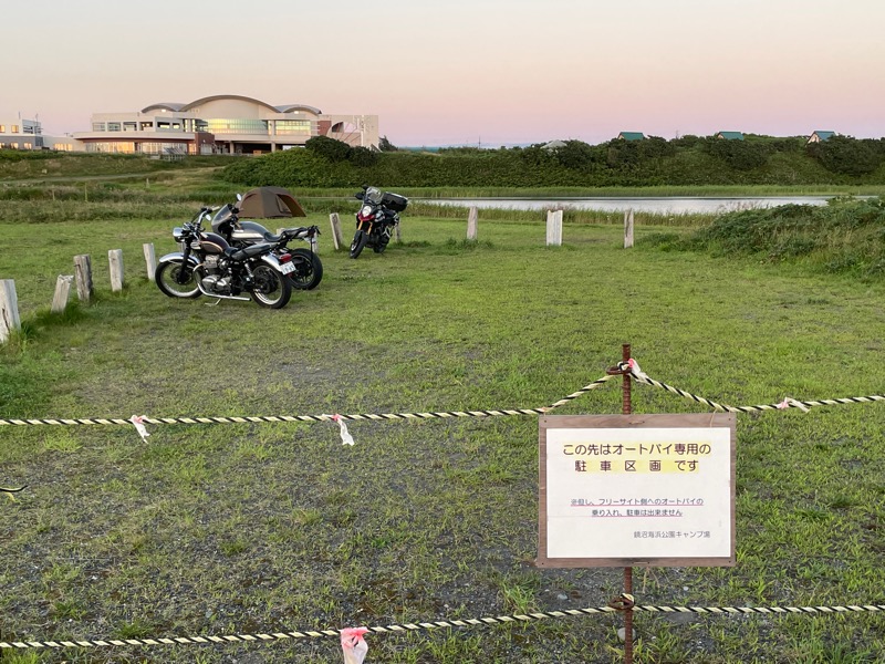 いっつもバンガローとかテーブルとかあるあたりに設営していたけれど、こんな駐輪スペースあったんだね