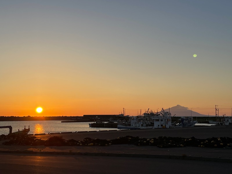 港越しに最高の夕焼けとオトンルイ、