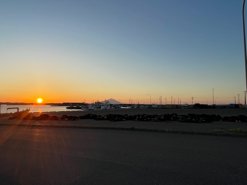 3日目はこの利尻山にぶつかった雲が稚内にもたれかかっていたようだったが、晴れる時はこんないい景色