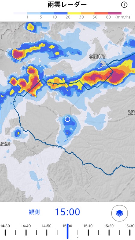 向こうの空が明るいのを見越して突っ切る・・・雨止んだ( ^ω^)