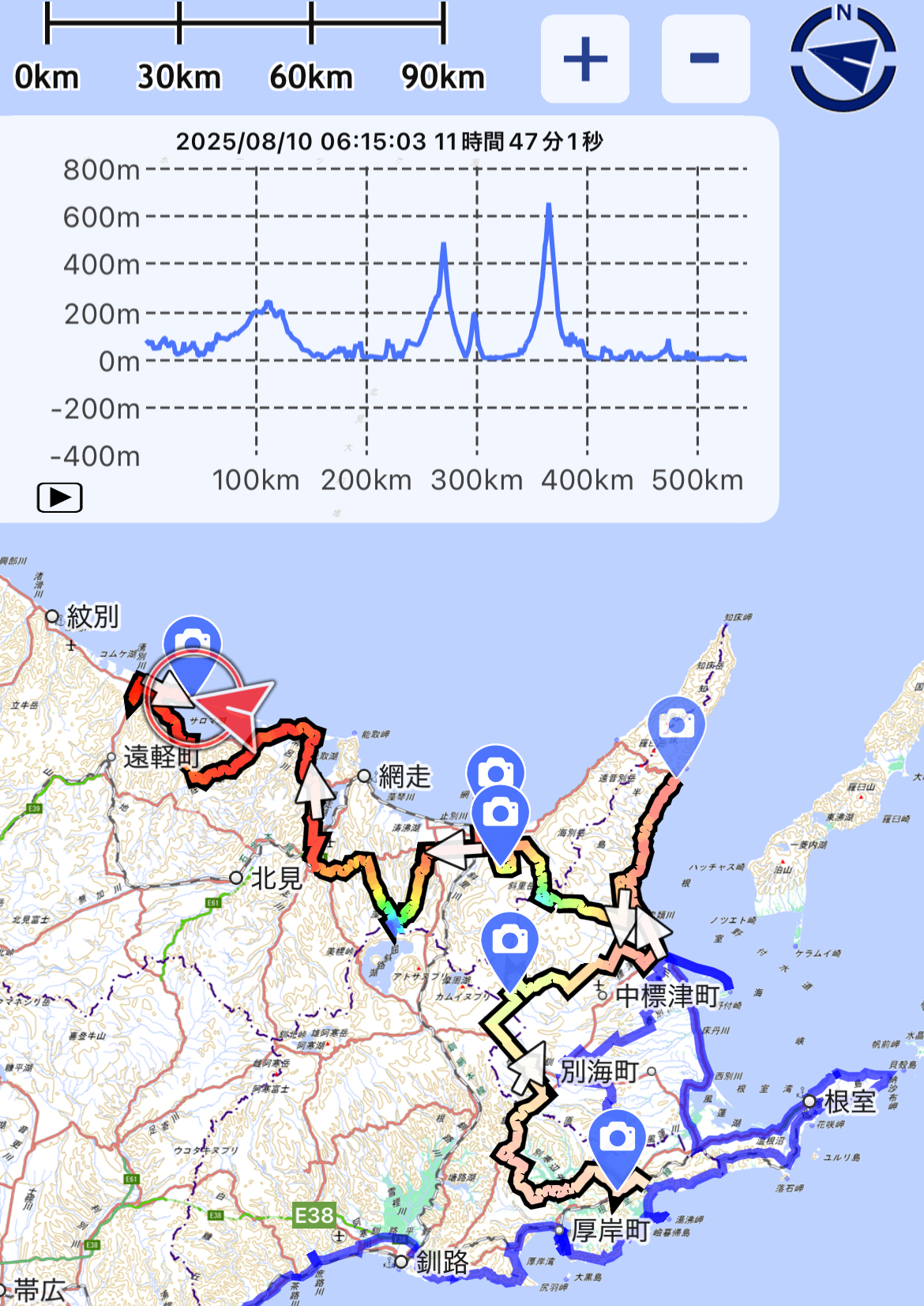 能取湖を右手に見たと思えばサロマ湖には触れずに佐呂間の町内に進んだり、と相変わらず不規則な走行