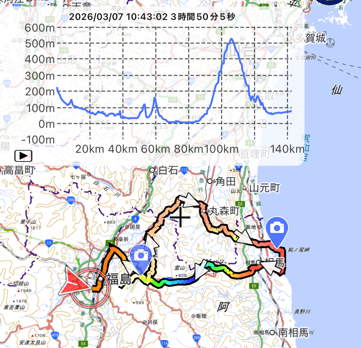 最後は相馬福島道路を起終点間乗り通し