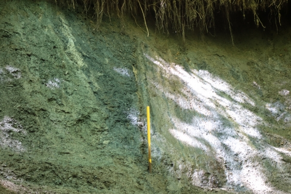 写真だと左が東 変成岩質の黒っぽい泥