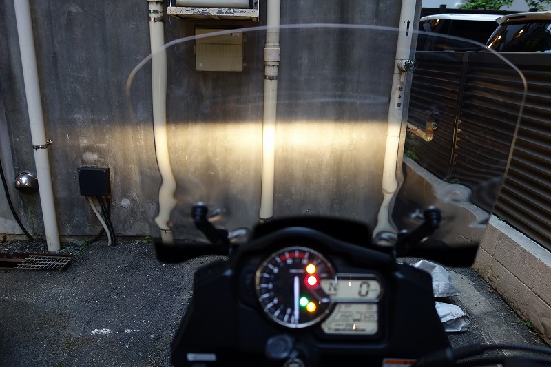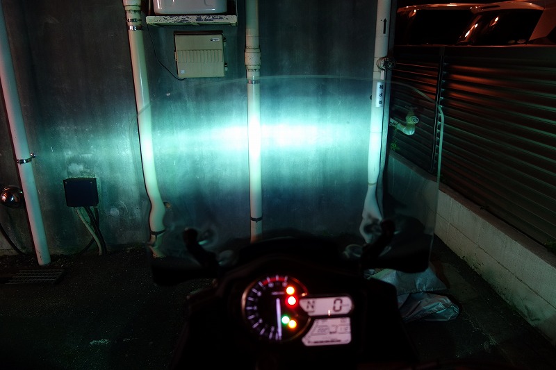 上の写真ではハロゲンのすっぱり切れてる高さにHID光の一番明るいところを合わせたんだが、