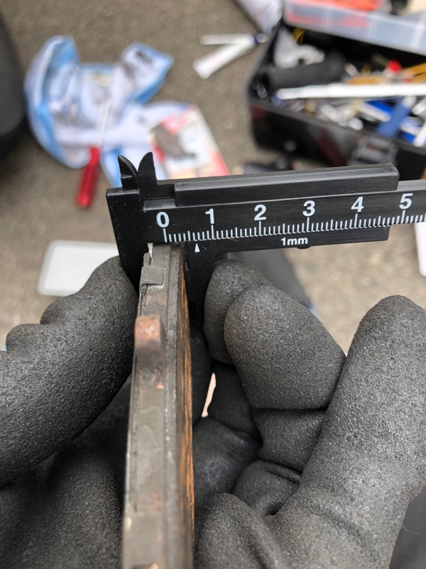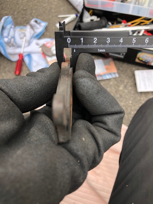 リアのタイヤ側(ピストンの反対側)の減りが強いので測ってみた