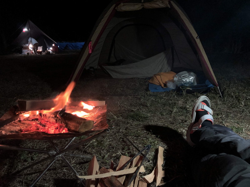 焚火の熱が沁みる・・・癒しだ・・・