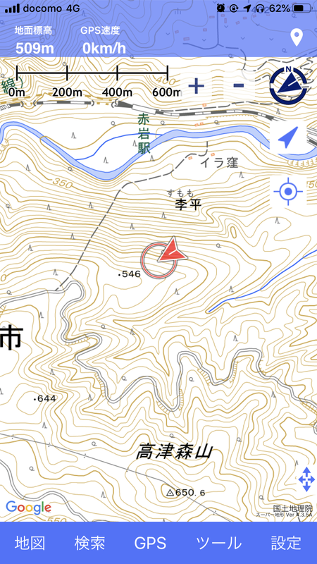 赤岩駅真南まで降りて来た時↓