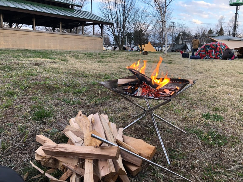 朝から薪割って焚火してたけど