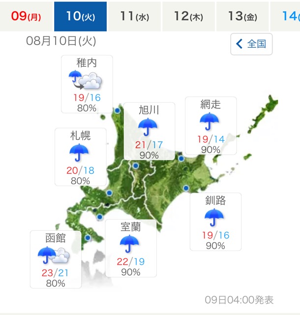 台風崩れが北東北を進むから、出来るだけ北に逃げておきたい