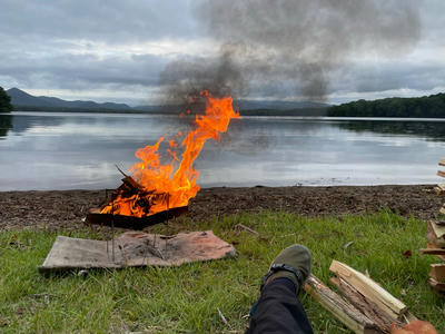 初っ端なのに火事みたいな始まりで焚き火スタートぉー