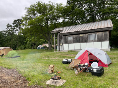 テントを建てて腹が減ったので