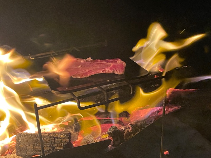写真の焚き火の火もかなり煽られている