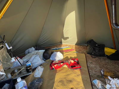 風は止み、土曜にもなったので、キャンプエリアが拡大