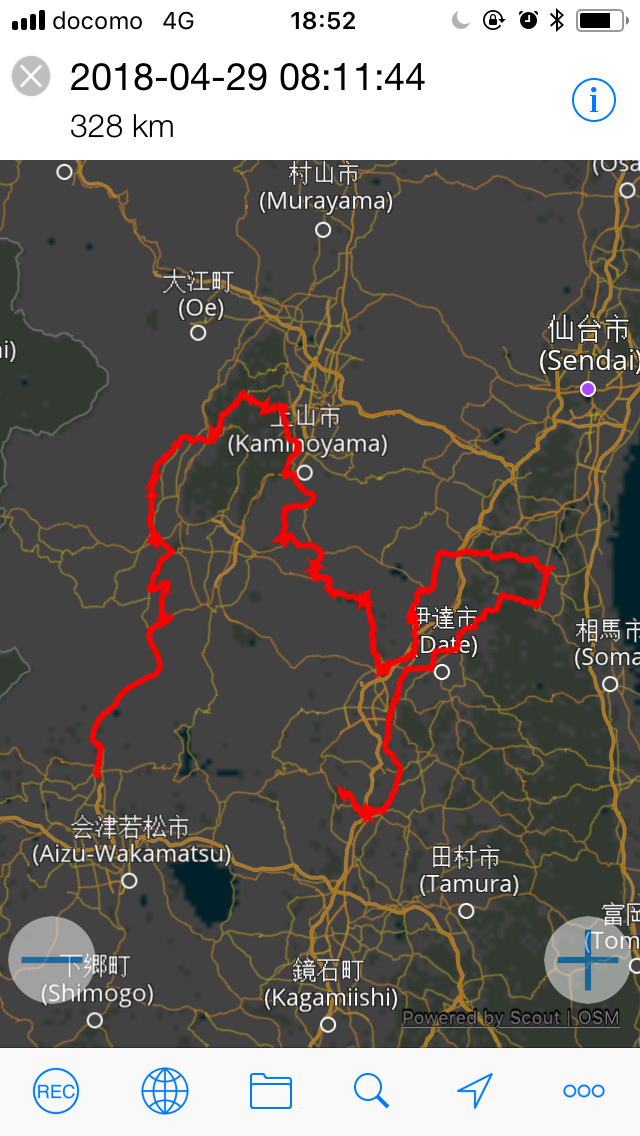 ▲キャンプ場から坂内食堂までの間は起動し忘れてログ欠損