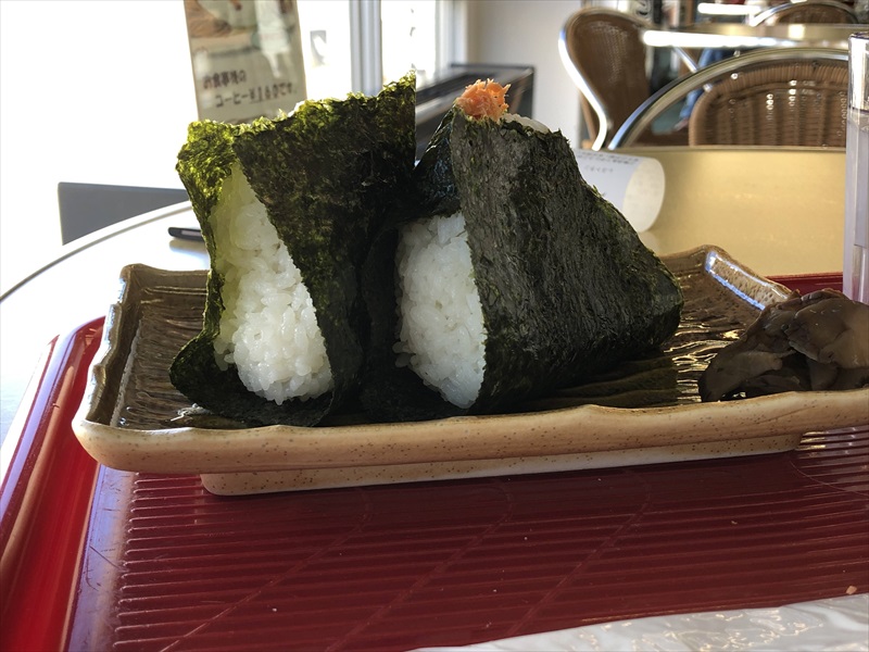 フェリーターミナルでおにぎりをいただく