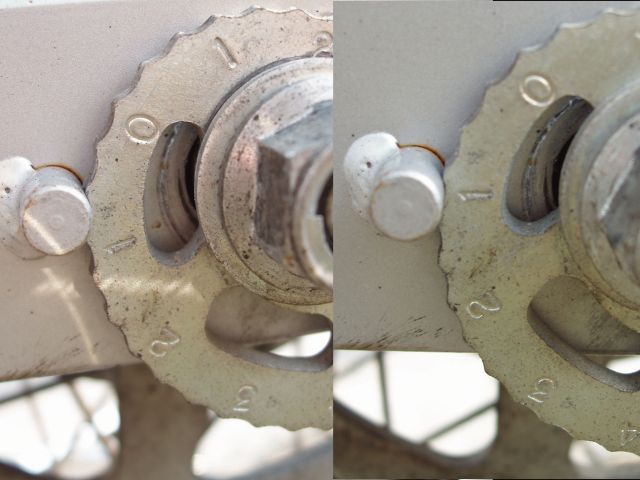 特に考えなくてもダイヤル式の調整具が着くオフ車はラクチンである