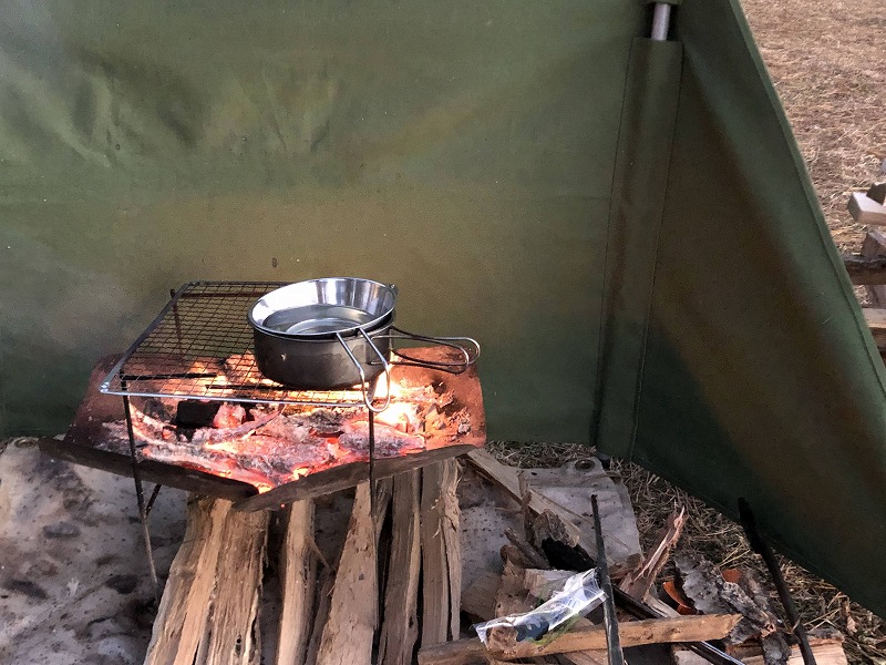 焚火の熱をどうにか利用できないかと