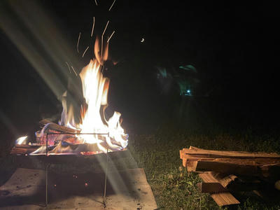夜中、鎮火してからと思われるが、焚き火台がひっくり返っていた (´・ω・`)